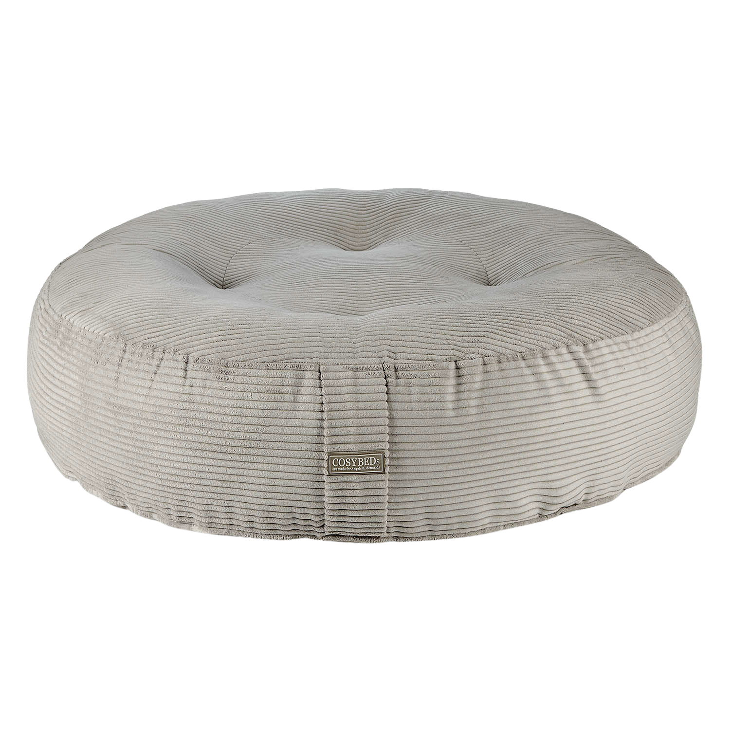COSYPOUF by DOGs INN © in CORD Light Taupe . Das ORIGINAL orthopädische Luxus Hundekissen mit extrem hohem Kuschelfaktor! 100% chillen 100% Handmade in Germany in Form eines Bagel. In diesem Donut, Nest oder Pouf schläft der Hund wie auf Wolken ! Das Füllmaterial ist ideal zur druckentlastenden Weichlagerung geeignet und wird auch in der Krankenpflege eingesetzt. Es wurde speziell entwickelt zur druckverteilenden Weichlagerung und ist das in der Krankenpflege bewährte Füllmaterial. Die Innenkissen haben einen Reißverschluß, sodaß Sie jederzeit die Möglichkeit haben Füllung zu entnehmen um somit den Härtegrad für Ihren Hund selbst zu wählen.