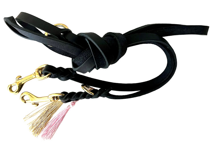 Fettlederleine in Schwarz/Messing 240 mm